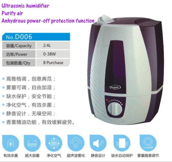With people upturn living standards,air-conditioning widespread use,lead to air-conditioning disease to happen ,such as skin tighten, dry mouth and tongue,cough & cold and so on.this product in the atomization process,release mass negative oxygen ions, effective increase indoor humidity, Moisten dry air,combine smog and dust drift through the air and make it precipitation,remove the smell of paint,funk,smell of cigarettes,stink,make the air more fresh,ensure you and your family’s health.